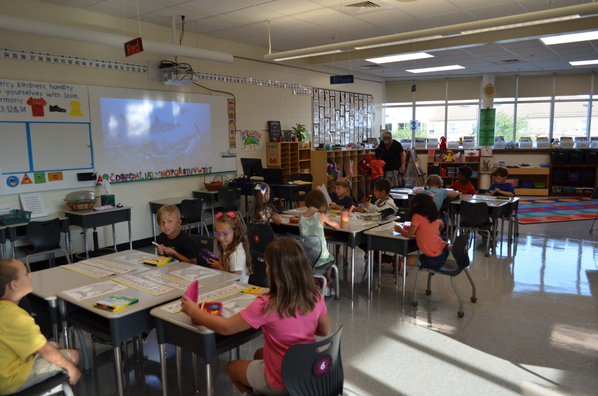 On Tuesday, elementary students (PreK-4th grade) were greeted with a balloon archway and our caring faculty and staff, and then started their days with circle time in each of their classrooms before moving on to other subject areas and activities. Middle school students were welcomed by kind sidewalk chalk messages and their teachers in their classrooms, and then delved into their schedules and class expectations. High school students connected with friends in the halls, greeted teachers, and started the day developing classroom covenants and mutual expectations, learning about their course syllabus, and having their first chapel of the year with Superintendent, Dr. Michael Badriaki. He shared about the theme verse and our scriptural verses this year from Jesus’s sermon on the Mount, The Beatitudes in Matthew 5:1-12, and also of God’s love as described in the book of John.