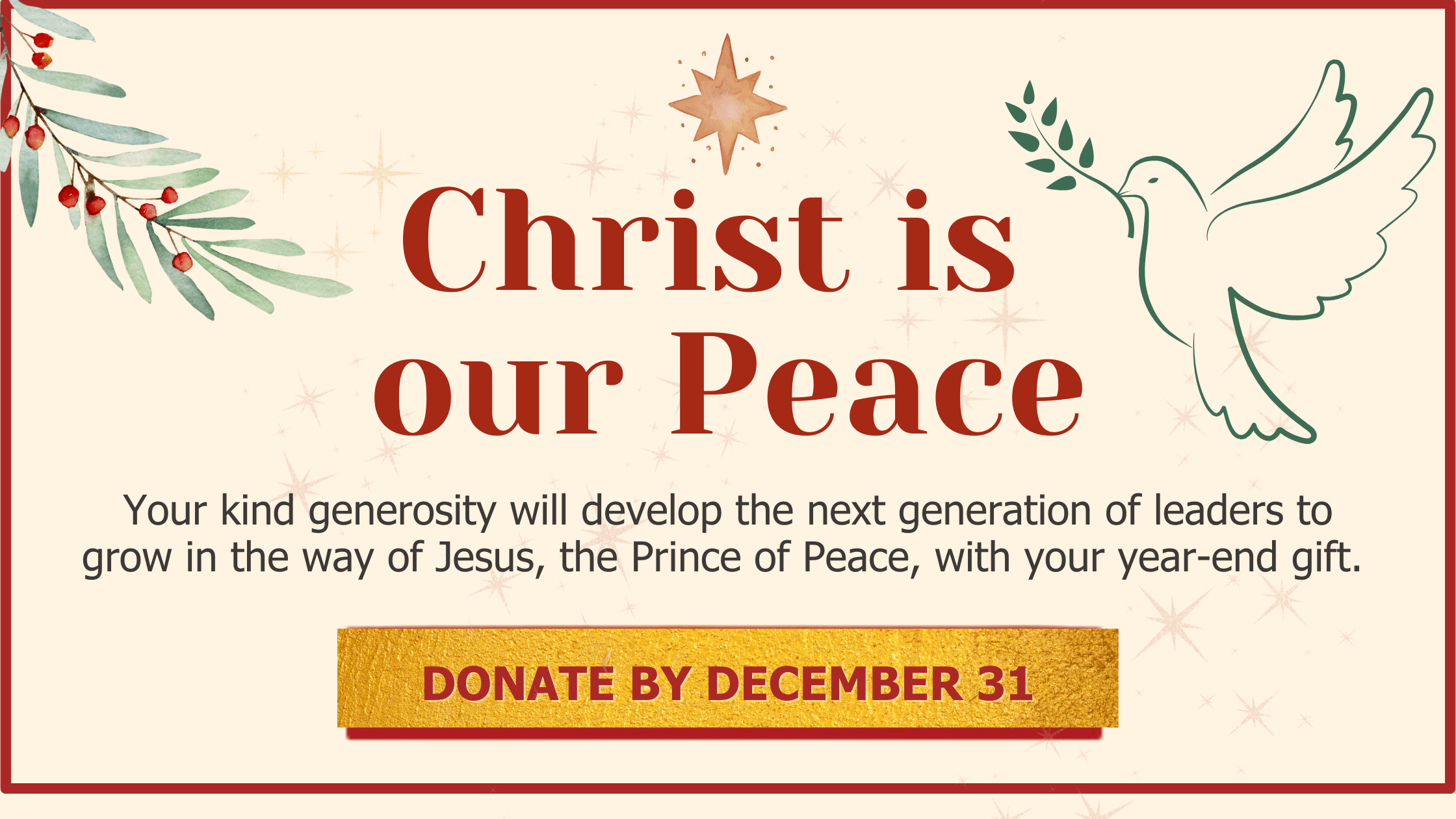 Thank you for investing in the next generation of leaders to follow in the way of Jesus, the Prince of Peace. Merry Christmas!