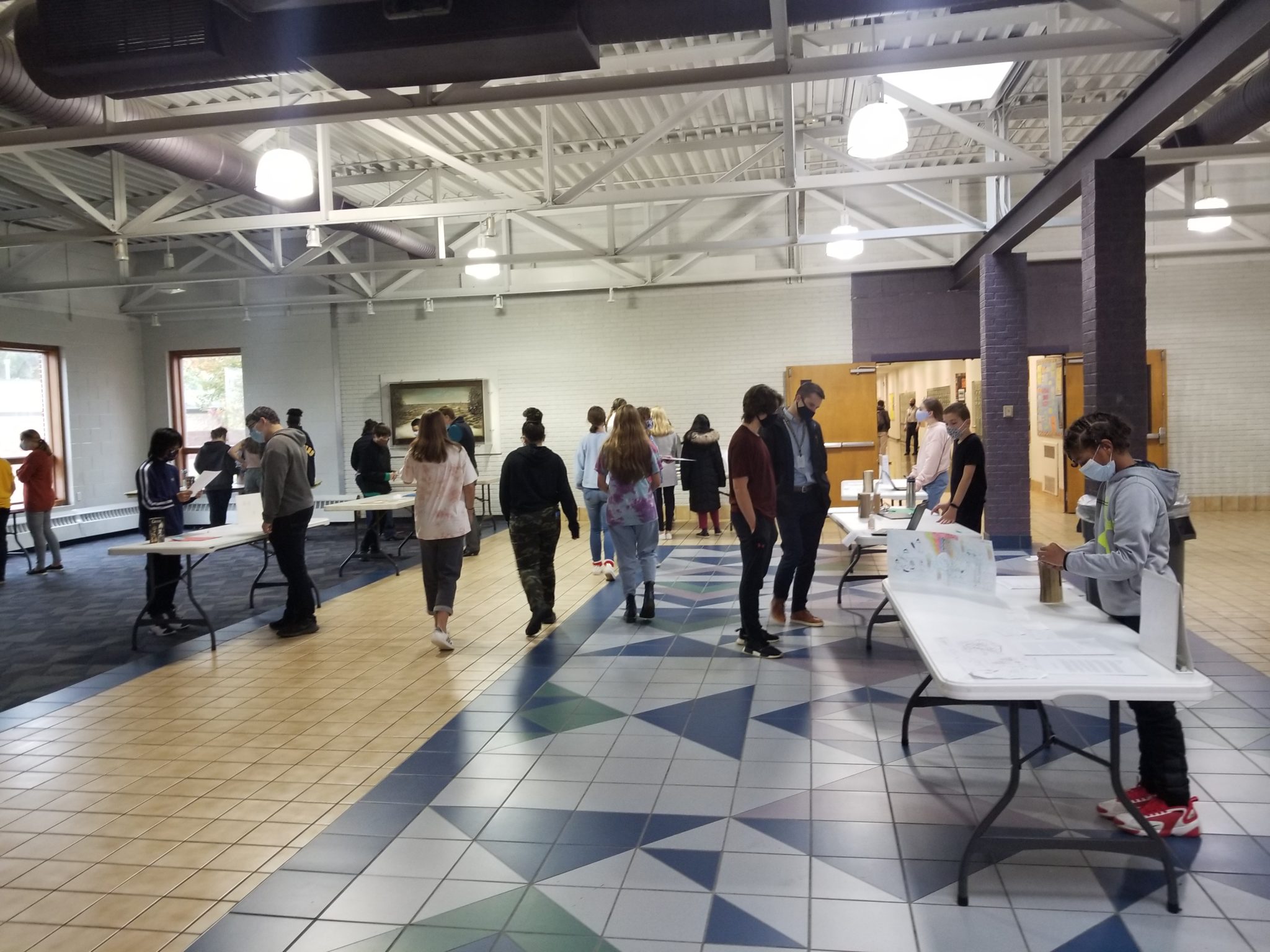 Taking the perspective of someone related to their research, students individually shared their understanding of their topic with high school students.